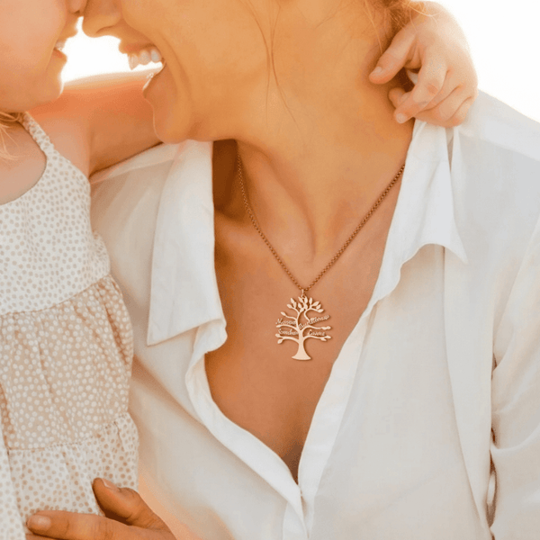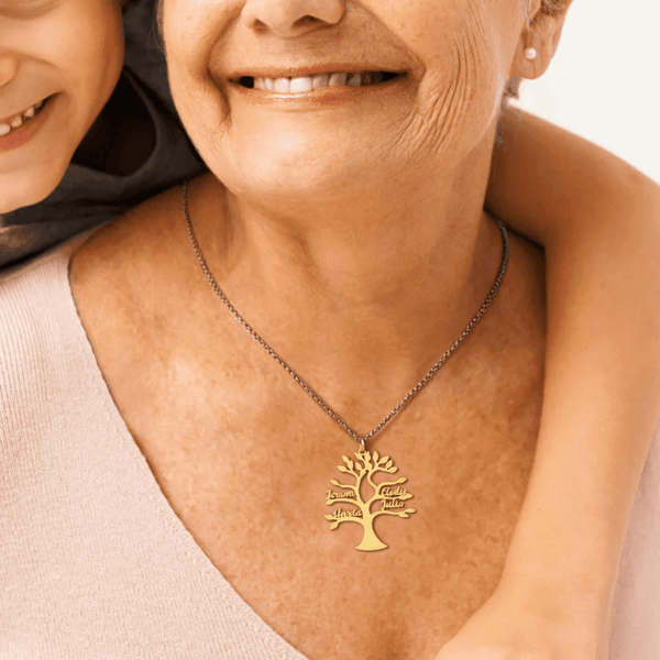 Vous pouvez personnaliser votre collier jusquâĂ 6 prĂ©noms, disposĂ©s harmonieusement sur lâArbre de Vie.